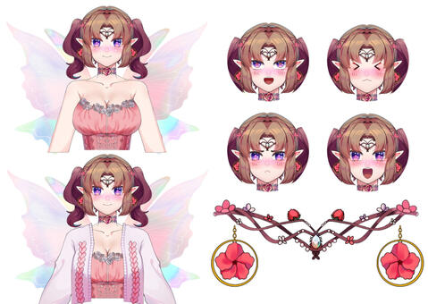 My current L2D model is a halfbody comfy outfit design! But I have a full reference sheet of my main outfit(model tba), with a dark faerie design/model & a yamikawaii/menhera design on the way!